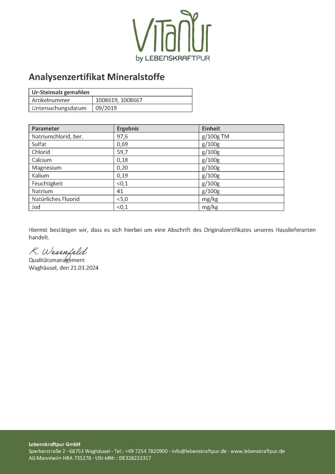 Sicherstellung der Reinheit unseres Ur-Steinsalzes
